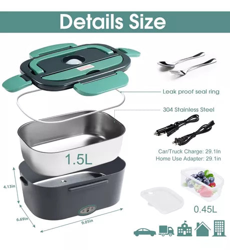 La fiambrera eléctrica de 40W es la solución perfecta para disfrutar de comida caliente en cualquier momento y lugar. Diseñada para calentar los alimentos de manera rápida y uniforme, es ideal para el hogar, la oficina o el coche, gracias a su sistema de conexión versátil.